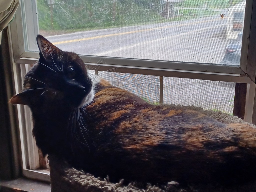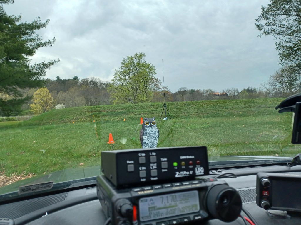 Been a busy few days off. Yesterday I decided to attack Satan’s Putting Green for the first time this year. I let it go so that the bees would have some fine cuisine until the major flowers started blooming. Well, that might have been an error, no matter how well intentioned. Anyone with Army experience would know the term “significant vegetation”. This refers to an amount of vegetation in which you could provide concealment to troops. That described my yard until yesterday. I attacked it with my industrial strength weed whacker and beat it into submission. Now it no longer looks like a pasture gone wild and sort of resembles a lawn that has been ravaged by a demented greenskeeper. All this allowed me to set out today on an activation at Little Buffalo State Park. Propagation was not the best but we logged 12 contacts including some park-to-parks and had an enjoyable time. We got slow drive bys from the park ranger and had some curious looks from fisher folks but no one approached us. As always, we left no trace of our prescience. All in all a good time was had by all. A father with 2 sons parked next to us did ask me what we were doing as we were packing up. I told him and his son proudly showed me the 2 trout he had caught. I am attaching some pics of our set up along with some cat pics because my cats have positive ions. All cations are positive. Namaste, kidlets.