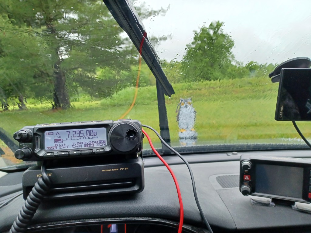 So … everyone who has gone out to activate a park in the rain during a radio blackout caused by a solar CME, raise your hands. Yeah. I swear, I had checked the solar data before we left yesterday, May 10th, and the storm hadn’t hit. I figured that we could get set up and work a quick 10 before the blackout and then be done. Nope, not a chance. We got to Little Buffalo State Park US-1376 and got set up and started out with a few quick contacts. Hearing the signal reports I was getting, I realized that the storm had hit and I checked the solar data and sure enough we were in severe storm status. The A index was in the 130s and K was 9. Yup. It took us about an hour to make 10 contacts and the signal reports were dismal. My wyfe was a real trooper, though. I could tell she was getting discouraged but she never said anything negative, she was encouraging and helpful. I am very thankful to the hams that were out there on the radio in spite of the blackout and solar storm. This can be contrasted with May 6th. I was sitting here in the late afternoon around 1830 and decided that I was bored. I loaded the car and got the wyfe and we set out for Big Springs State Park US-4355. Within an half hour we logged 26 contacts including 2 park-to-parks. It was a good way to spend an early evening. After we were through we took a ride down some back roads and looked for critters. It is nice to live in an area where there are parks close by so that we can go do activations when an impulse takes us. Well kidlets don’t let reports of bad conditions keep you off the radio, you just might be surprised. Have fun and practice safe radio. Namaste
