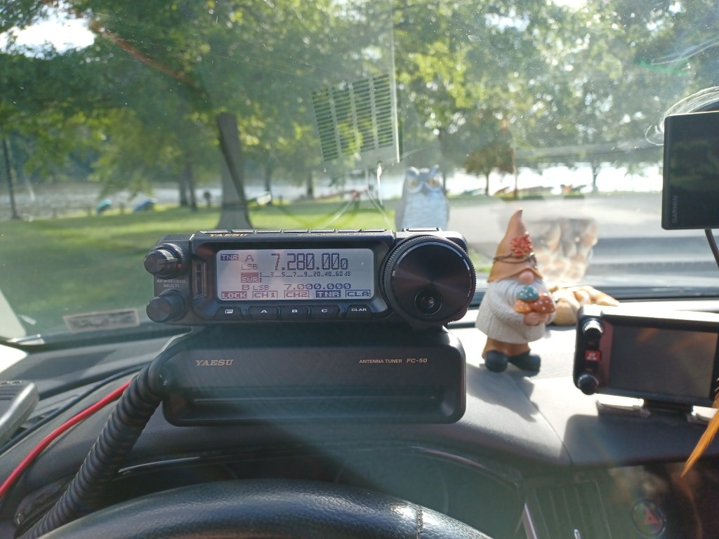 I tried to update this yesterday, really I did but somehow I had turned on the “stickykeys” function on my keyboard and it was a bitch to turn it off. Anyway, here I am. On last Sunday, the 18th, we went to Big Spring State Park US-4355. It had been a while since we had activated there and it was a nice change of pace. The only bird we heard was an Eastern Wood Peewee. I did a short recording there to add to my YouTube Channel, @planetgesterious. I have started adding videos there about POTA and radio and anything else that strikes my fancy. Well at Big Spring we made 14 contacts in about 1/2 hour. Surprisingly there were a few carloads of people who showed up though no one bothered us. On Wednesday the 21th, we activated Little Buffalo State Park US-1376. It as a nice way to get out of the house and spend some time by the lake. We heard European Starlings and Tufted Titmouses (Titmice?) amd watched the clouds roll in from the West. We even caught a few drops of rain. Once again, I shot a short video clip for my channel. We made 34 contacts in about 40 minutes and had a nice peaceful time people watching. Overall a couple of good activations. The more we do these activations the more I like the concept of light weight equipment and I am thankful I have gotten away from the full-blown dog-and-pony show that I used when I first started.. I can be set up in a few minutes and it only takes a short time to take down. Well, I am going to bring this to a close as I have to get ready for work and we all know that work is the curse of the drinking class. Namaste for now, y’all.
