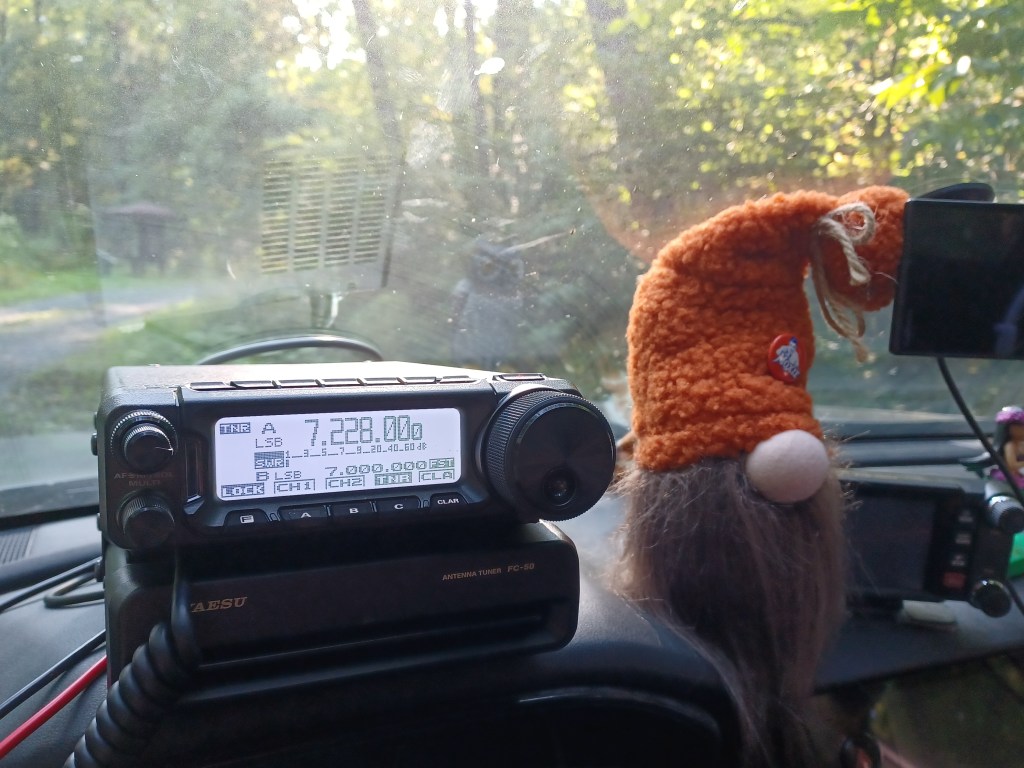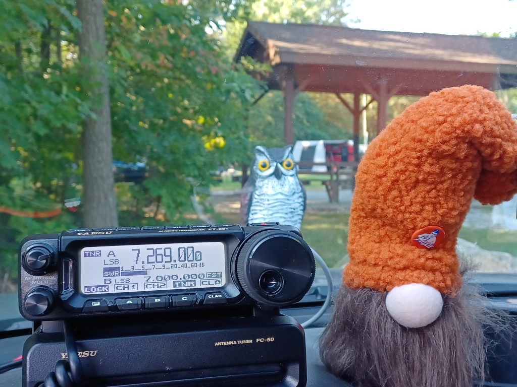 What a week. On Tuesday the 10th, SWMBO and I were heading out and were waylaid by an e-mail exchange and phone call exchange that ended up with me going into work Tuesday night as a co-worker had emergency dental surgery. SWMBO and I altered our plans for the day and we did an activation in Gettysburg US-0027. Culps Hill was still being occupied by a platoon of grass cutters and maintenance folks so we went back to Barlows Knoll. We worked 31 contacts in about 40 minutes under the supervision of Zarathustra the owl and Moxie, our new companion gnome. On Friday the 13th we took care of some important stuff that needed to be done and then were able to spare a bit of time to go out and activate. We set out for 3 Square Hollow Vista but when we got there, there was a family picnicing so we moved on. We started travelling towards Big Spring State Park but before we went more than 200 meters we almost got run over by a truck hauling wood-chips from a logging site. Narrow roads and large trucks do not mix. We made it to Big Spring State Park US-4355 without further incident and since I was unaware that there was a solar storm going on, I worked 21 contacts within 1/2 hour. We then reluctantly packed up and did some more chores which had to be done. Today we set out early for breakfast at the Newville Diner in Newville, PA. After we went to the ATV lot in Michaux State Forest US-5471 above Pine Grove Furnace. Usually the lot is pretty quiet but it is a Saturday so there was a fair amount of activity. There were even some people camping there including N3AIR who was set up for the VHF contest. He and I spoke for a bit after I tore down. In about 45 minutes we made 37 contacts and then the band dropped out on us. we packed up and went and completed some errands that needed done and then I tackled Satan’s Putting Green. I got that under control and still have a few things to do but I guess there is no west for the reary. As always, namaste kiddos.