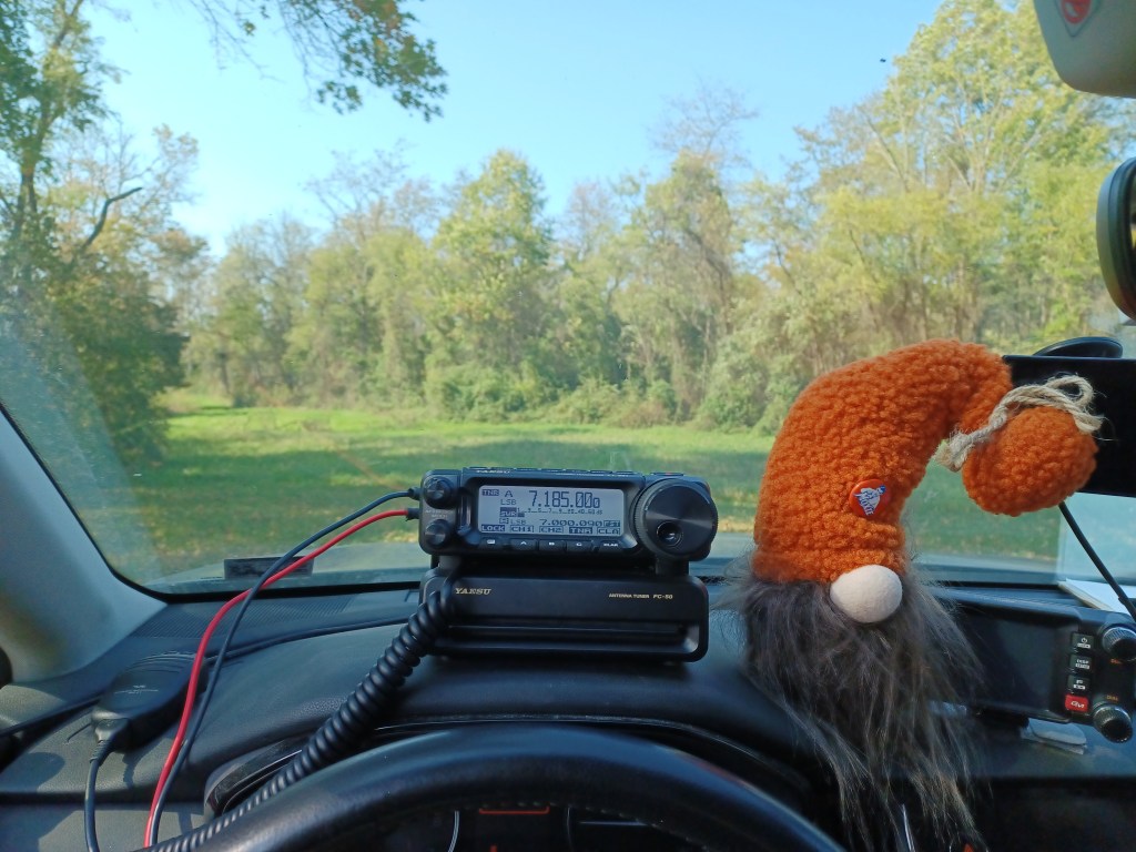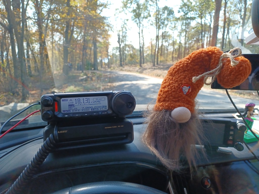 Had a couple days of beautiful weather. The type of days that make you forget that bad weather is coming. We took advantage of the good weather by doing some activations. Yesterday, 12 Oct, we went to Little Buffalo State Park (US-1376) and set up at the boat launch area. I used my 17M hamstick and it did not take long to get enough for a full activation. In all, we worked 17 stations from there of which 1 was a park-to-park. We needed to do some errands so I did not get a chance to take pictures. Well, I have posted pictures of the place before. Today, 13 Oct, we started (at the suggestion of SWMBO) out at Three Square Hollow Vista in Tuscarora State Forest US-5479. As soon as I parked a large group of Amish in a wagon pulled by a tractor arrived. They were soon followed by some young teens who pushed their scooters up the mountain. Like I said, it was a beautiful day and they were taking advantage of the weather and having an outing. They walked by my car and I got more than a few curious looks but they went on down to the picnic table and had their gathering. I installed my 17M hamstick in my mag-mount and called CQ POTA. We worked 11 stations from the Southern part of the US and also had a call from Sweden and one from Spain. 17M was in good shape. We wanted to do another spot so we then packed up and headed down the mountain. We drove the meandering roads of Western Cumberland County to State Game Lands PA-169 US_8867 and parked in one of the more secluded parking areas. We used the app to identify Northern Cardinals, Tufted Titmouses (titmice?) and Dark-eyed Juncos. After we setup and got on the air a car containing 3 male teens parked and they set off into the woods. This time I used my 40M hamstick and was able to work PA, ON, NY, WV, KY, GA, OH and MA stations. One of the PA stations to give us a call was KB3PSN who is the president of the local ham club where I live. Not too bad. Since I had more than 10 on 40M, I decided to try 10M. I worked 3 Texas stations and 1 from Mexico. The only drawback today was that it was too windy to put my owl on the hood of my car. Moxie the gnome had to be extra vigilant. I did make a mistake that ended well. I had left my phone on the hood of my car and drove about a mile before I noticed it. I am very lucky that it didn’t fall off! Well I guess I will close for now. Namaste kidlets.