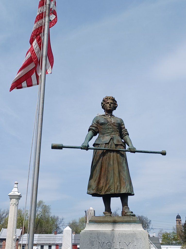 This afternoon we took a walk through the Old Graveyard in Carlisle PA. It dates to pre-revolutionary times and has a lot of old stones there. Buried there, among other notables, is Molly Pitcher. She went with her husband to war and helped Martha Washington cleaning clothes and blankets at Valley Forge. During the battle of Monmouth, her husband was wounded. She took over his cannon, keeping it firing during the battle after he was carried off the field. Below you will see a picture of the statue dedicated to her along with a link to a video I made of the walk through the cemetery to her grave.