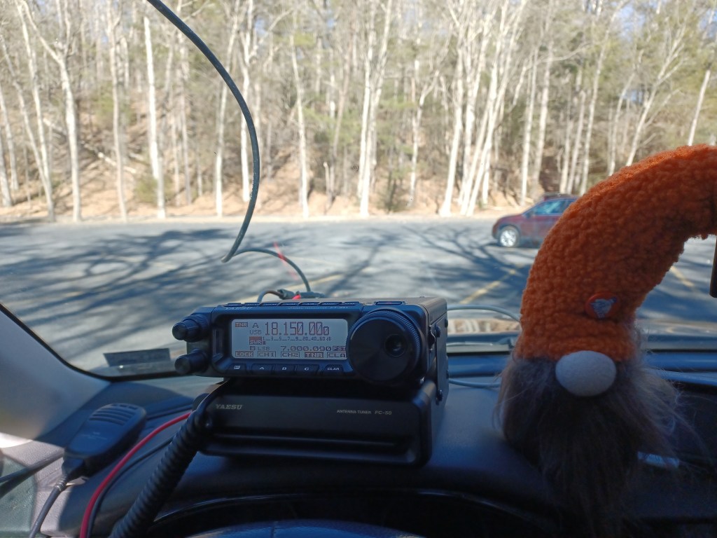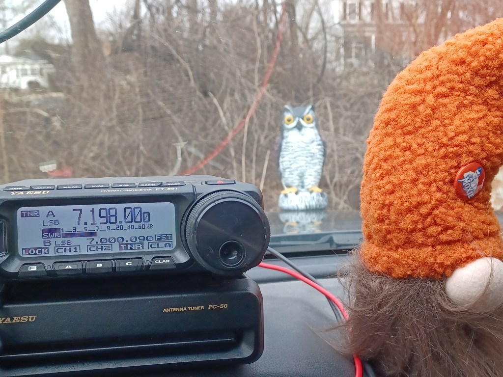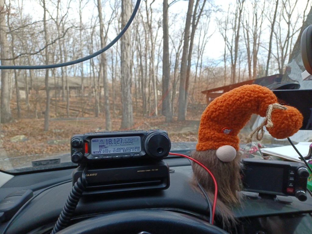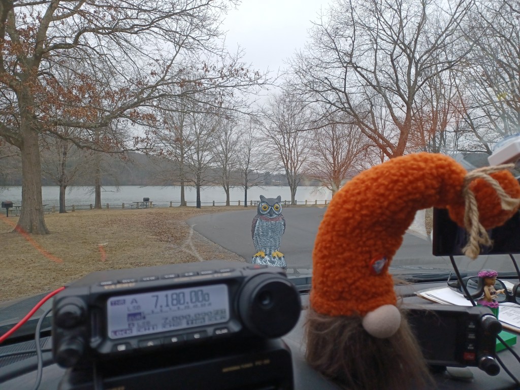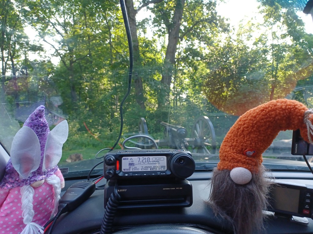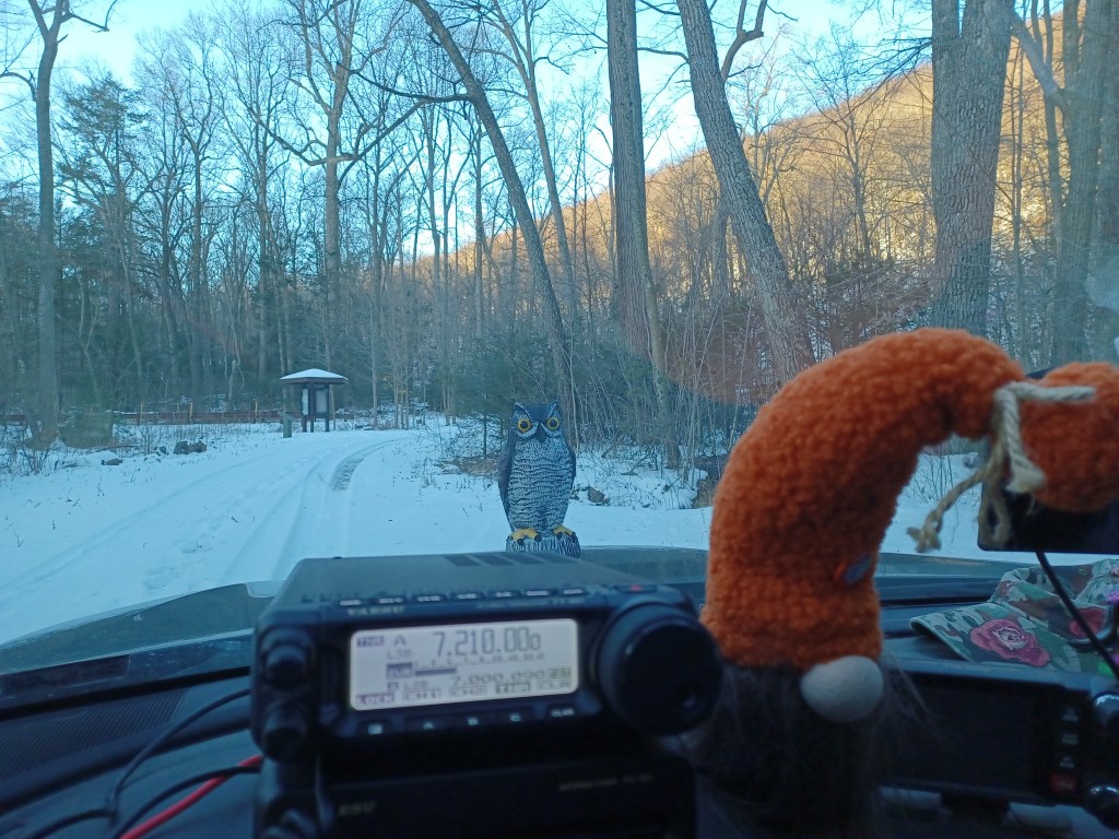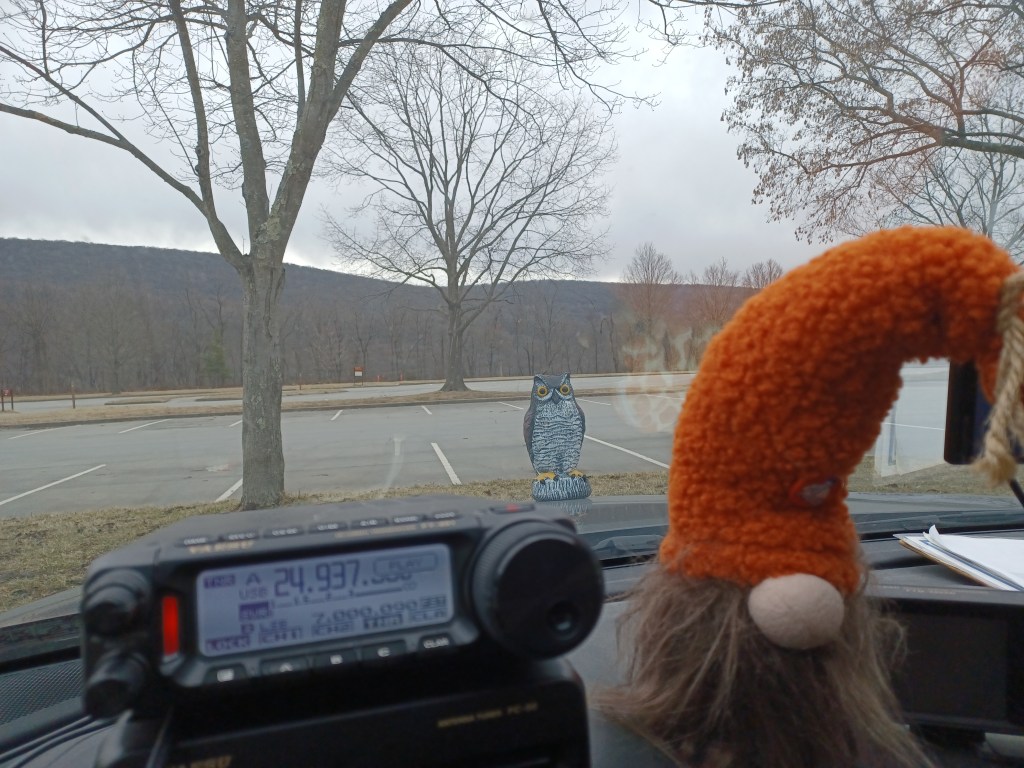 It has been a busy week. I had to work 4 consecutive days, Monday thru Friday (12 hours at night) and that makes a person tired. This was also the week for the 13 Colonies Special Event, which is a major event in ham radio with thousands of stations vying to contact all the stations. Well, I was able to complete a clean sweep as of Friday, 4 July. I was pretty happy with that. Most of those stations I worked on CW, the rest SSB. Yesterday, 5 July 2025, SWMBO and I set out to get an activation in before it got too hot. We went to the ATV lot in Michaux State Forest US-5471. The last time we activated the lot was in March. As usual there were a few people there but not enough to make it difficult. One thing I like about the place is the fact that the people up there mind their own business and don’t worry about what other folks are doing. We made 31 contacts in an hour (9 of them park-to-park) and then the heat started building so we packed up and left. We came home and did some grocery shopping. Today, 6 July 2025, we went to the State Game Lands #169 US-8867 and spent some time there in the morning, again before the heat. We brought along Charade, the flamingo and Ptolomey, the owl. The lot we park at is on a back road so there is not a whole lot of traffic. This one we hadn’t activated since back in October of last year. Since this is a game land, I do try to avoid it during hunting seasons. It is a nice quiet area and a good place to park and play radio. Surprisingly, it has only been activated a total of 18 times. We made 14 contacts in about an hour as the bands were not that great today. We had a visit from a guy in his early 20’s who left when he discovered that I was holding an antenna rather than a fishing pole. On Friday, we brewed a batch of IPA which is currently bubbling away in the fermenter. The only other significant activity this week was we finally had the chance to cut Satan’s Putting Green. The plant growth was pretty high as this was the first chance we had to deal with it since our return from vacation. The amount of rain we had in the past 2 weeks did its work and made the place look like the pastureland it originally was. Here is the list of birds our app picked up today: Northern House Wrens, Gray Catbirds, American Robins, American Goldfinches, Northern Cardinals, Carolina Cardinals, Song Sparrows, Tufted Titmouses, Yellow Warblers, Chipping Sparrows, Common Yellowthroats, Indigo Buntings, House Finches, Red-Bellied Woodpeckers, Eastern Peewees, Cedar Waxwings, Carolina Wrens and Field Sparrows. I guess this is my latest update. I am attaching a couple of pictures and a link to a video of the IPA boiling. As always, namaste kiddos.