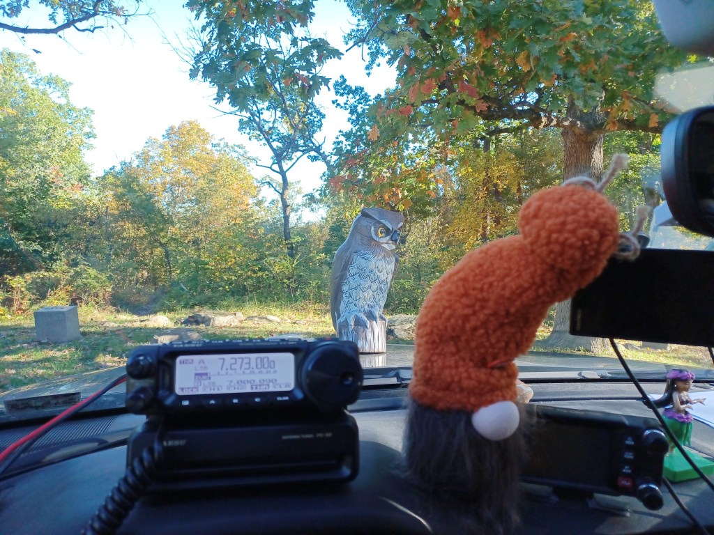 Thanksgiving 28 Nov 24. Not a pretty day. The dismal sky was a morose shade of gray; a hue that guarantees feelings of despondency and morbidity. It is only in Autumn that such feelings can be invoked by the clouds. The forests of Southern PA were so dank that even Robert Frost could not describe them in an upbeat or pleasant manner. Light rain was attempting to fall and all the birds were in hiding. Of course, we decided to activate. We went to Gettysburg US-0027. We were surprised by the number of people that were strolling around the battlefield. We thought we would have the place to ourselves with most people being at home doing family things but there were pedestrians all over the place in the vicinity of Spanglers Spring and Culp’s Hill. We got set up and started out on 40 M. I figured that there would be a lot of hams at home waiting on their turkey to cook and sneaking away from the family to play on the radio for a brief time and I was right. We had a legitimate activation within 9 minutes which is pretty good for 40 M during daylight hours. We continued on 40 for another half hour, working stations from NH to TN and north to ON. I then made the command decision to change bands and mounted my 10 M antenna. It does not take long to swap antennae. I take the current one off, put on the one for the next band I want to work, tune the radio to an empty freq and get on the air. One thing I try to do is stay within the privilege areas for General Class Licenses. I posted our location on the POTA spotting page and also announced us on the DXSummit page. It did not take long for stations to find us. There were a lot of European stations, we even worked a park-to-park in Germany. We hung around for another half hour end finished up with 53 contacts which made my total for Gettysburg 500 … half way to my Kilo award. Now I am sitting at home letting the pellet stove remove the damp from the air and enjoying coffee as my cats snooze in the warmth. Enough for today. Namaste kidlets.