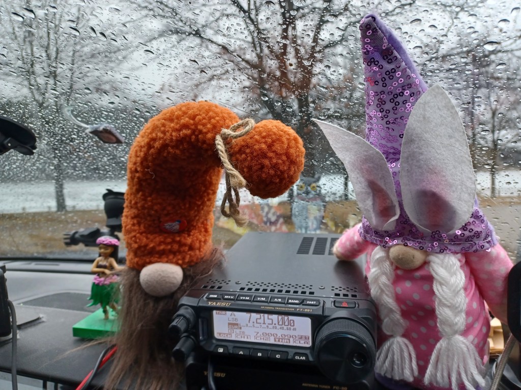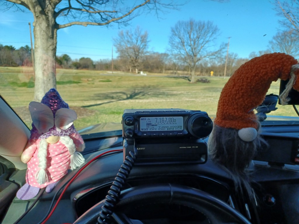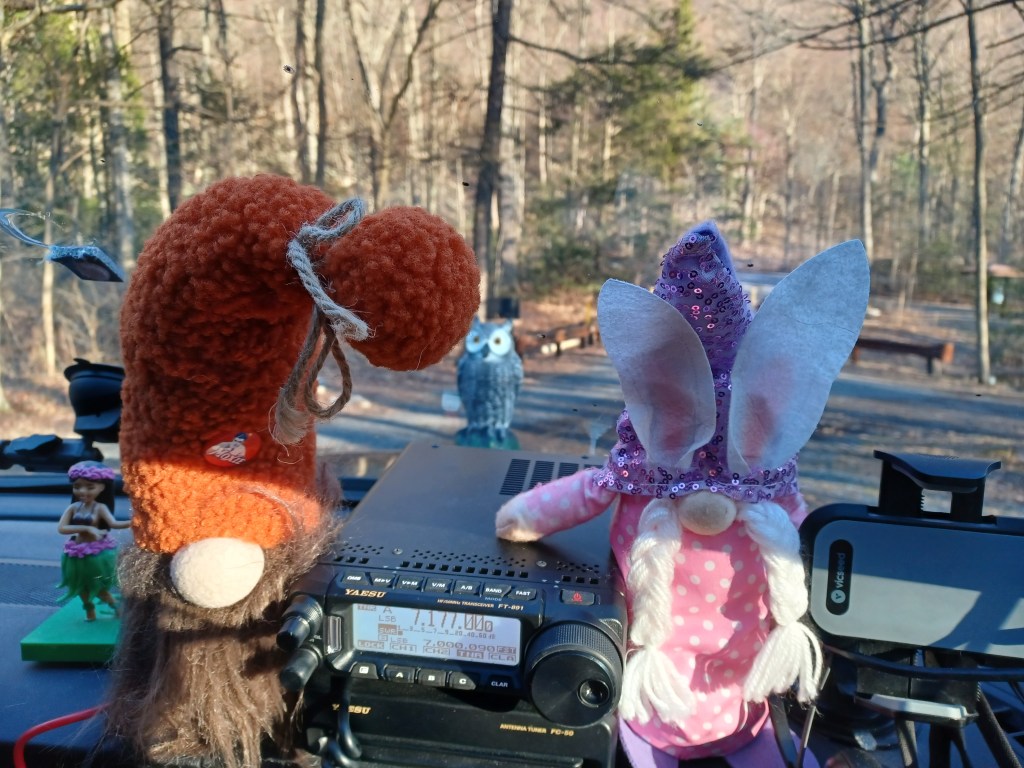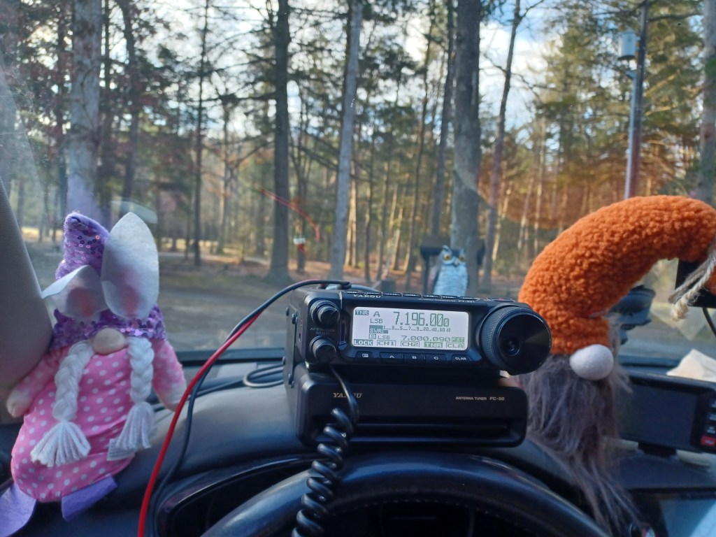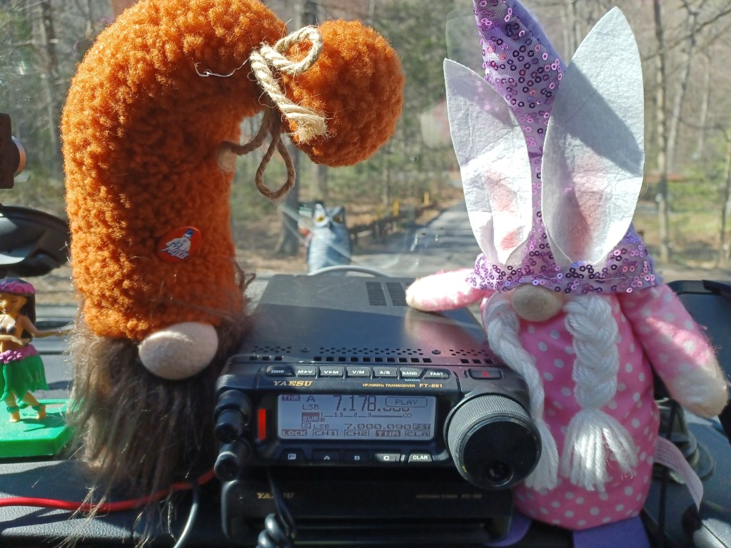 As I have mentioned previously, I have my operation streamlined. At first, I was dragging out the ham radio equivalent of a full British mountaineering expedition, more bells and whistles that one person would ever need. SWMBO made suggestions over time which work out. Nowadays I use a mag mount on the car roof with one of my various “Hamsticks” on it. It isn’t perfect but it makes for a convenient and non-obtrusive setup. The only thing I do that might attract a bit of attention is to place one of my owl decoys on the hood of the car. I do carry a couple other antennae as back ups but rarely have occasion to use them