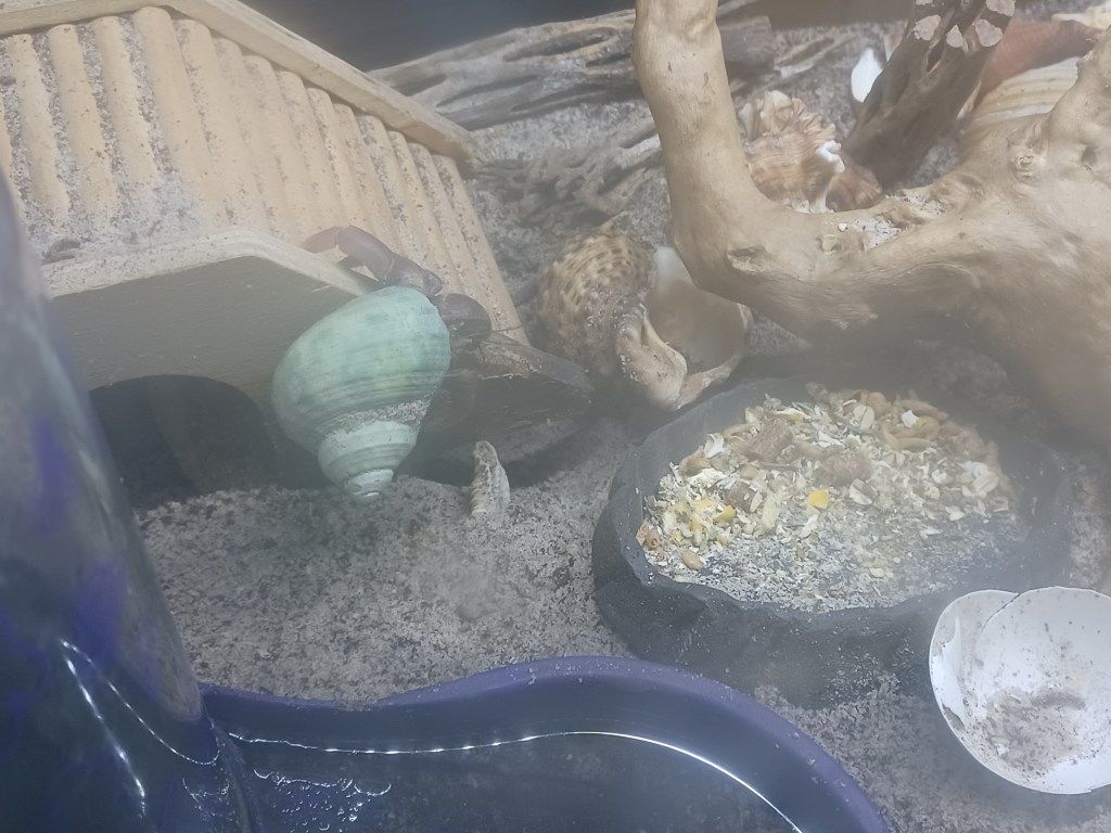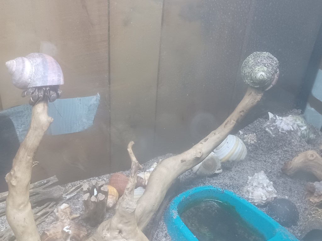 I believe I have mentioned previously that we have hermit crabs. Before I left, I checked the tank and they have been busy performing massive urban renewal projects. They have dug up the tank and moved stuff around. Sometime overnight they pushed some of the sand in the tank up into their water bowl and up into their saltwater bowl. The trails of sand cause the water to drain out due to capillary action; I refilled the bowls before leaving. Land hermit crabs need water on their gills to breathe. They climb into the water bowls and store water in their shells to keep their gills moist. So now they can drink and breathe.