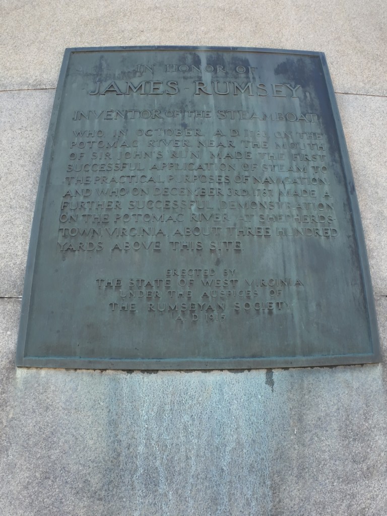 Yesterday, Saturday, we took a drive down to Shepherdstown, WV, seeking a few cemeteries. We stopped in at Elmwood Cemetery where we had been previously. We also visited the Old English/Episcopal Cemetery where there are some graves of Revolutionary War soldiers. We then visited a park which held a monument dedicated to James Rumsey, the inventor of the steamboat (not Fulton as we were taught in school). After this we took a leisurely drive along the Potomac River to Harpers Ferry National Historic Park US-0735. In 25 minutes, we worked 16 contacts before heading home.